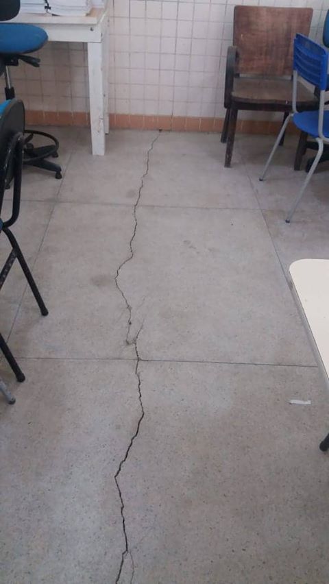 De acordo com uma estudante, que pediu para não ser identificada, as rachaduras começaram na biblioteca e se estenderam para as salas de aula.