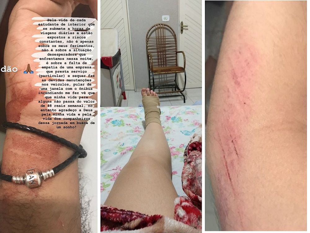 Por conta do nervosismo, alguns passageiros quebraram as janelas com chutes, porque não teriam visto nenhuma trava de segurança, e acabaram se cortando. “Foi muita gritaria: ‘Corre, corre que o ônibus está pegando fogo’”, lembra.