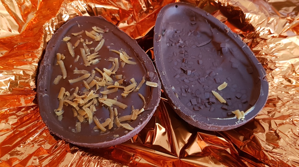 Ovo de Páscoa com capuccino é para quem foge do doce muito doce, como eu, e amei a proposta da Chamego Doceria. Metade do doce era pão de mel com uma camada de doce de leite, coberto com chocolate e recheada com brigadeiro de capuccino. Show de bola, e até o dia 2 de abril aceita-se encomendas. São 14 sabores de ovos artesanais, todos trufados. Além de uma latinha com mini-ovos sortidos e o cardápio tradicional (com cookies amanteigados, brownies e bolos).