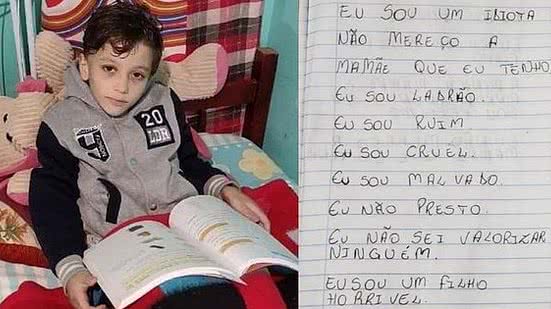 No caderno, que foi encontrado em um dos apartamentos onde Miguel morou com a mãe, no Balneário de Santa Terezinha, há frases como "eu sou um idiota", "não mereço a mamãe que eu tenho", "eu sou ladrão", "eu sou ruim" e "eu sou um filho horrível".