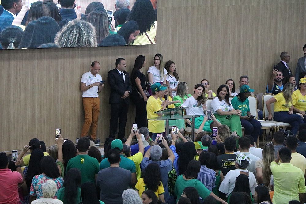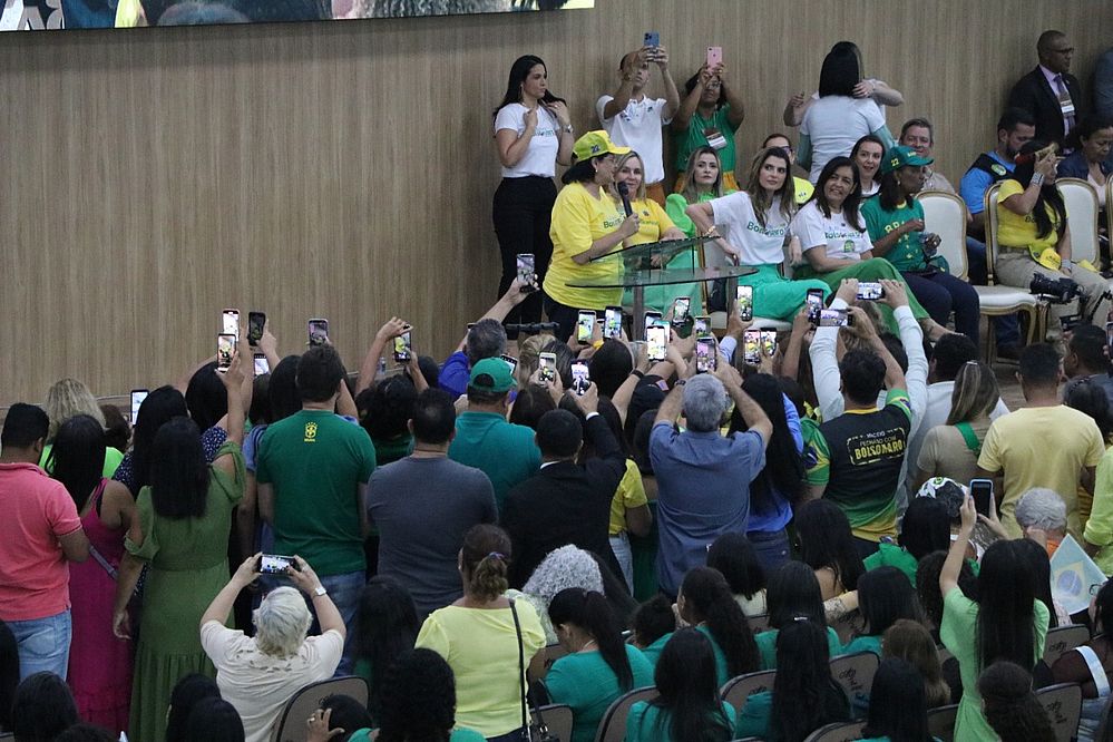 Michelle Bolsonaro discursou por último. Ela falou sobre a iniciativa de percorrer o Brasil. "Antes de ser primeira-dama eu sou mãe e esposa. Estamos andando o Brasil para desmentir quem fala que Bolsonaro não gosta de mulheres. Sou líder de pautas públicas, de pautas de acessibilidade e junto com Jair queremos continuar cuidando das causas minoritárias. Queremos cuidar das mães que choram por não poder dar uma boa saúde para os seus filhos. Nós estamos trabalhando, e olha só quantos avanços conseguimos para crianças com necessidades especiais", falou a primeira-dama.