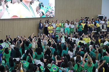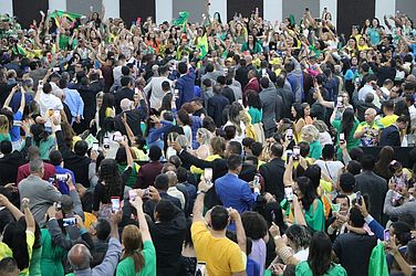 Michelle Bolsonaro discursou por último. Ela falou sobre a iniciativa de percorrer o Brasil. "Antes de ser primeira-dama eu sou mãe e esposa. Estamos andando o Brasil para desmentir quem fala que Bolsonaro não gosta de mulheres. Sou líder de pautas públicas, de pautas de acessibilidade e junto com Jair queremos continuar cuidando das causas minoritárias. Queremos cuidar das mães que choram por não poder dar uma boa saúde para os seus filhos. Nós estamos trabalhando, e olha só quantos avanços conseguimos para crianças com necessidades especiais", falou a primeira-dama.