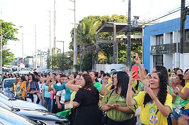 Durante sua fala, a ex-ministra Damares Alves lembrou que já foi pastora na capital alagoana. "Já morei em Maceió, já fui pastora aqui. A virada do Bolsonaro, no Nordeste, será feita pelas mulheres", disse a senadora.