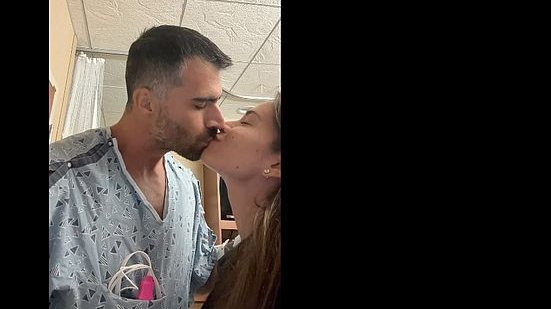 Adriana Sant'Anna, esposa de Rodrigão, mostrou o marido emocionado. "Estamos saindo daqui ainda mais fortes como casal e filhos de Deus", escreveu ela na legenda do Instagram.