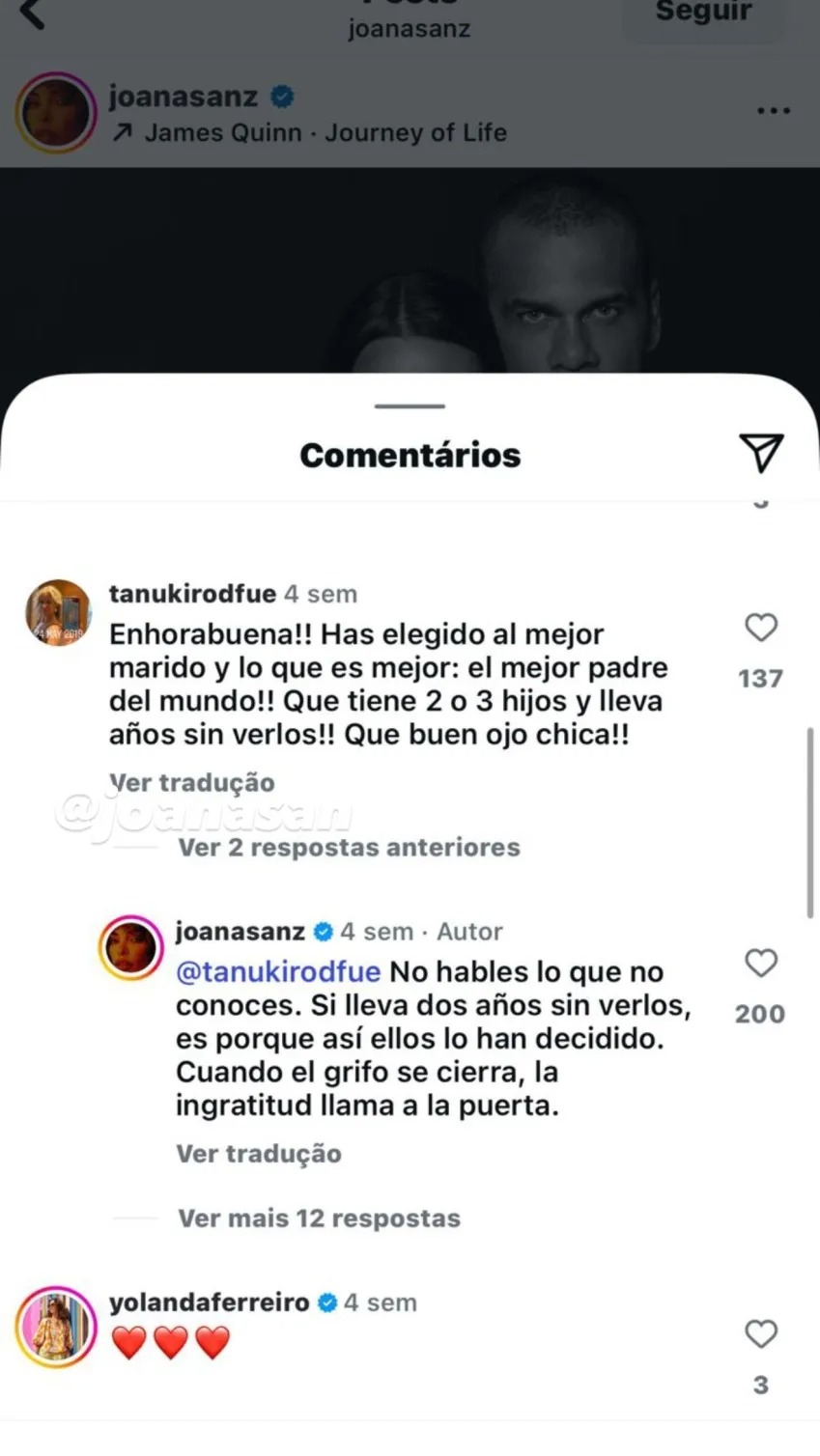Em uma postagem, a espanhola afirma que os adolescentes não mantém contato com o pai e que “quando a torneira fecha, a ingratidão bate à porta”.