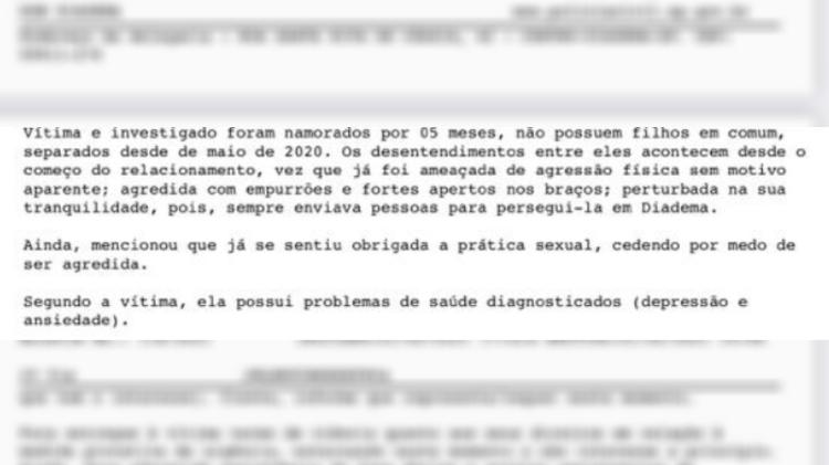 Ela ainda relata que se sentia pressionada a fazer sexo com o ator por medo de sofrer novas agressões. Segundo o depoimento, o ator teria mencionado que se eles não mantivessem a relação, ela "não seria de mais ninguém".