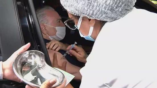 Temer compareceu ao posto de vacinação no Pacaembu por volta das 11h, segundo informações da rede CNN Brasil. Sem sair de sue carro, ele recebeu a vacina no braço direito.