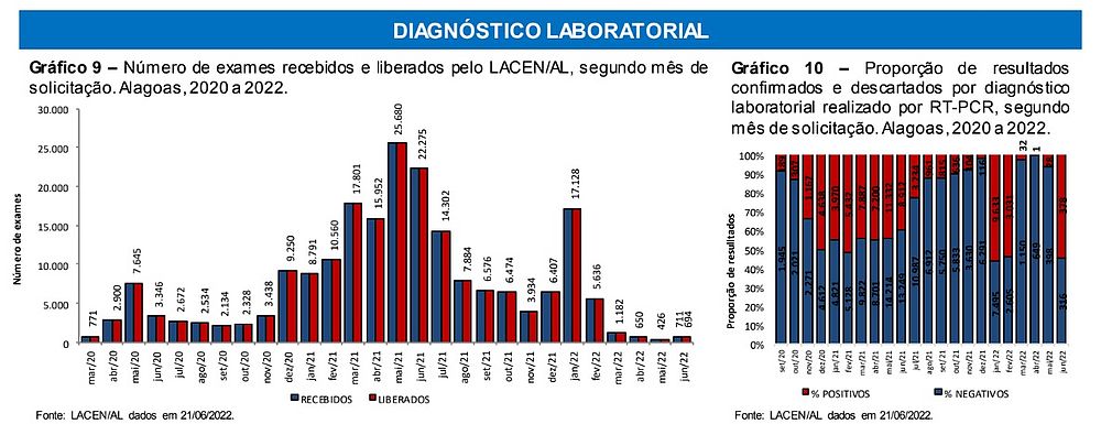 Conforme divulgado pela Secretaria, os números de testes em junho mostram, até agora, o crescimento dos diagnósticos laboratoriais após examinação por RT-PCR, em comparação com o mês de maio. No mês passado, 426 pessoas fizeram o teste.