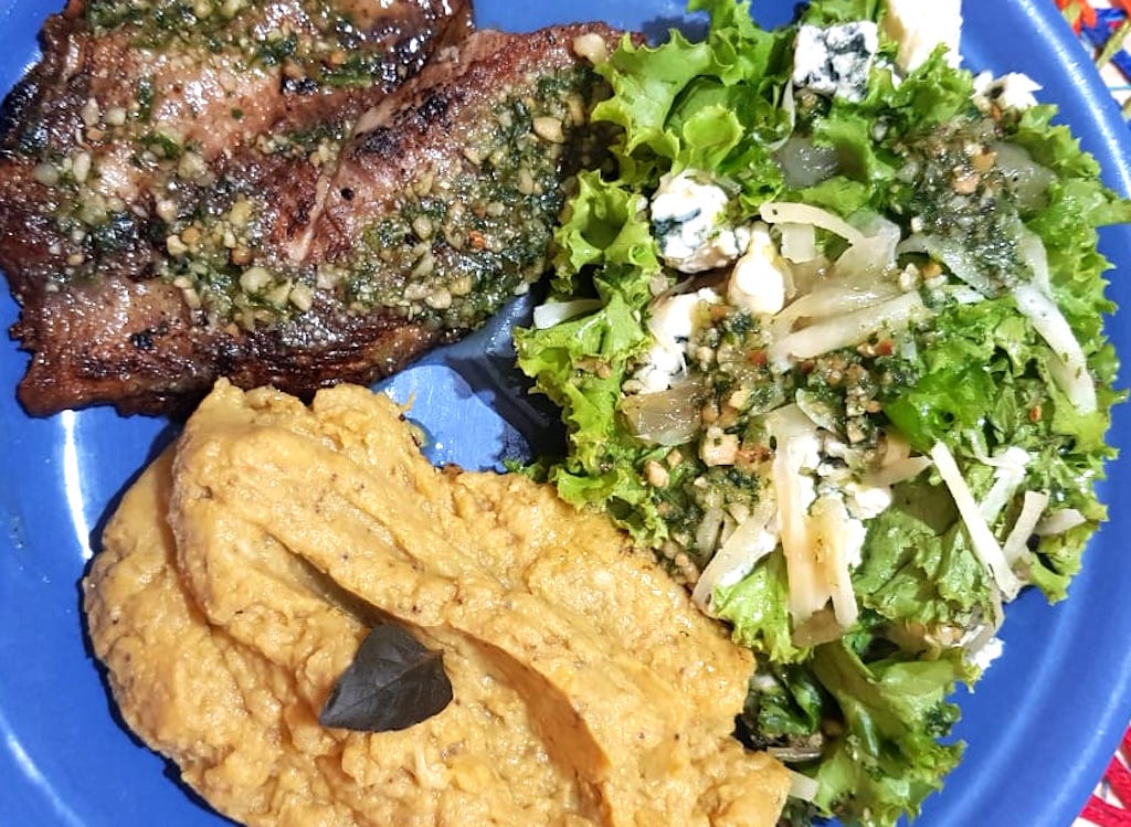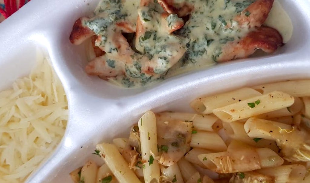 Peito de frango grelhado ao creme de espinafre com penne sem glutén na manteiga, abobrinha e limão. O que poderia ser simples, apenas ave grelhada, trouxe alegria ao paladar e com aroma cítrico. A cada garfada dava para sentir o carinho que a chef Letícia Melro tem pela cozinha. Nessa pandemia, busque comidinhas com ingredientes do dia, como o executivo da quarenta, que tem preços mais em conta para o almoço e assinatura de chef do restaurante Toscana, no bairro do Farol.