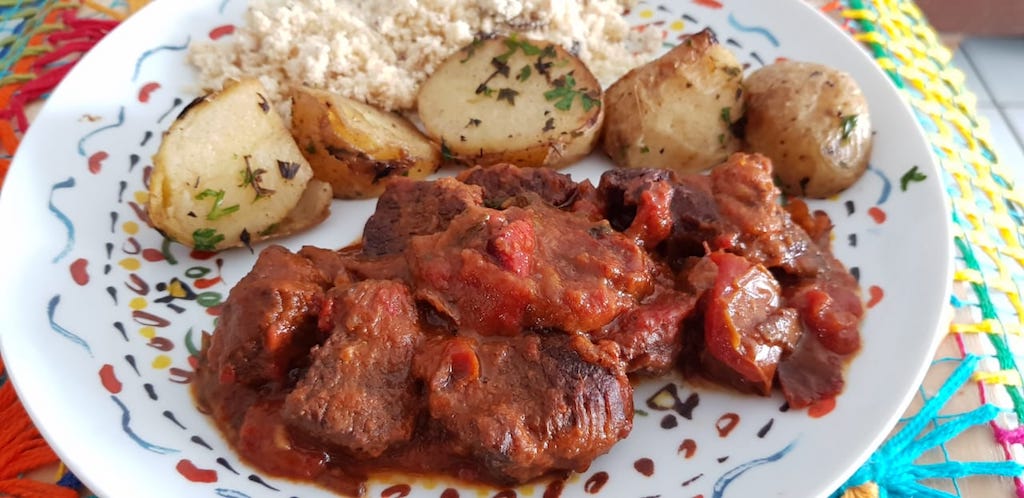 Carne cozida, lembrança de cozinha de vó, ganhou um toque vinho tinto