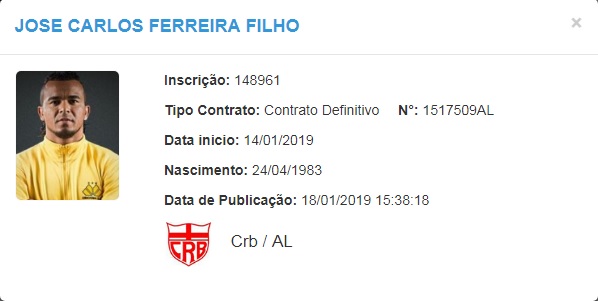 O nome do atacante Zé Carlos apareceu no Boletim Informativo Diário (BID) da CBF nesta sexta-feira (18), dando condições do jogador voltar a atuar com a camisa do CRB em 2019. Aos 35 anos, Zé dos Gols, como é conhecido, comentou sobre a responsabilidade de ser o atleta mais velho do elenco regatiano.