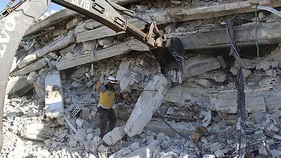 As equipes de emergência já conseguiram resgatar cinco sobreviventes, disse à AFP um membro dos Capacetes Brancos. Entre os mortos, há mulheres e crianças, completou a mesma fonte.