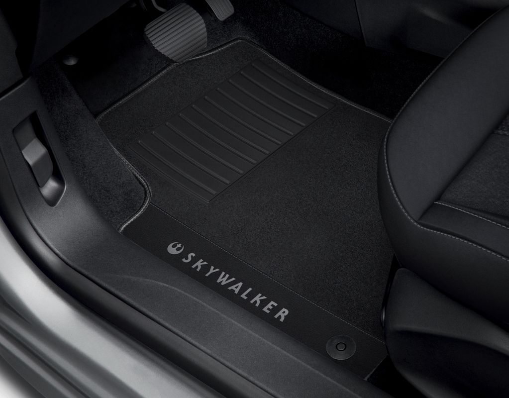 Há sinais do tratamento Skywalker também na cabine. Os quatro tapetes da “nave” recebem piloto e passageiros de maneira exclusiva: têm bordas com costura branca e aplicação do logo da Aliança Rebelde e assinatura estilizada Skywalker. Para plena segurança, o tapete do motorista conta com sistema de travamento compatível com as travas originais instaladas no carpete do carro.