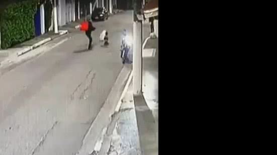 O rapaz, em seguida, parte para cima do criminoso, quando o ladrão vai em direção à namorada da vítima. Ao fugir, registros de câmeras mostram o ladrão subindo pela rua Governador Jorge Lacerda. Quando ele percebe a presença de uma viatura da Polícia Militar fazendo ronda na via, o falso entregador faz um retorno e foge, usando a rua onde ocorreu o crime.