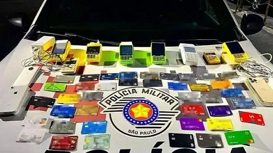 Durante a revista, o homem confessou que levava os cartões de 61 pessoas distintas, tinha placas adulteradas e duas máquinas de cartões usadas para golpes.