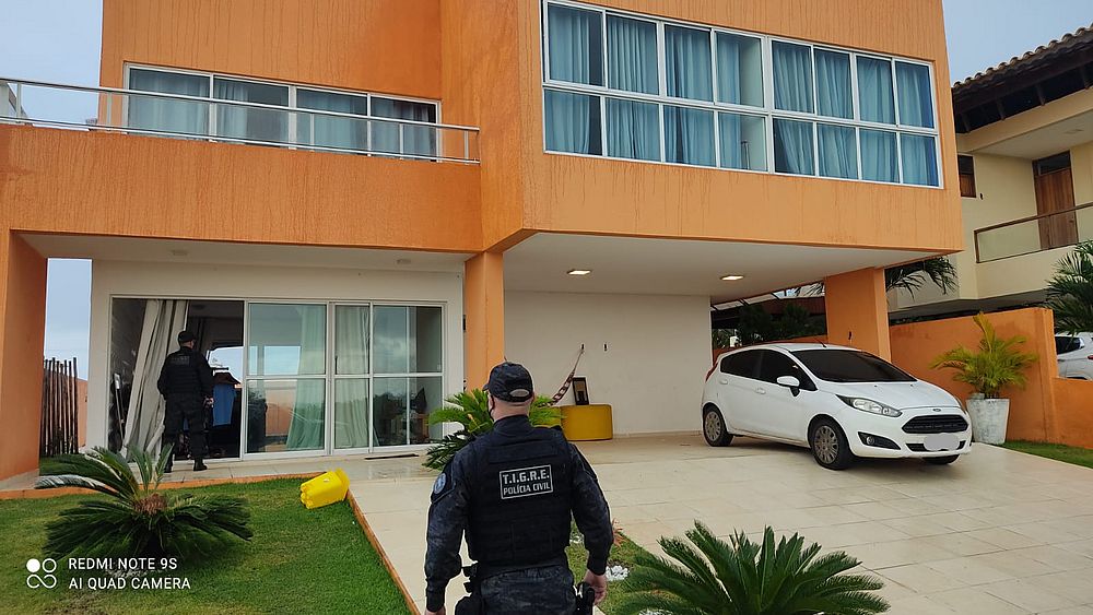 As imagens mostram a vítima chegando de motocicleta com uma criança na garupa e estacionando a moto na frente de casa, quando um veículo Citroën C4 Cactus, de cor preta, para ao lado e três homens caracterizados com roupas da Polícia Civil descem com armas em punho. Um deles está de boné e máscara, enquanto os outros dois utilizam balaclavas para esconder os rostos.