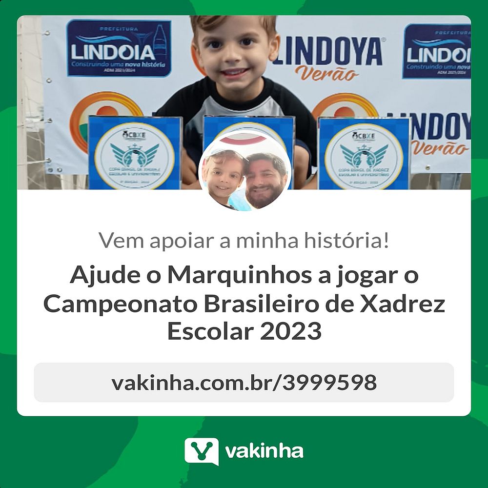 Como ajudar o enxadrista mirim - Para contribuir com o sonho do Marquinhos, é só clicar nesse link (clique aqui) ou doar via Pix usando a chave: [email protected].