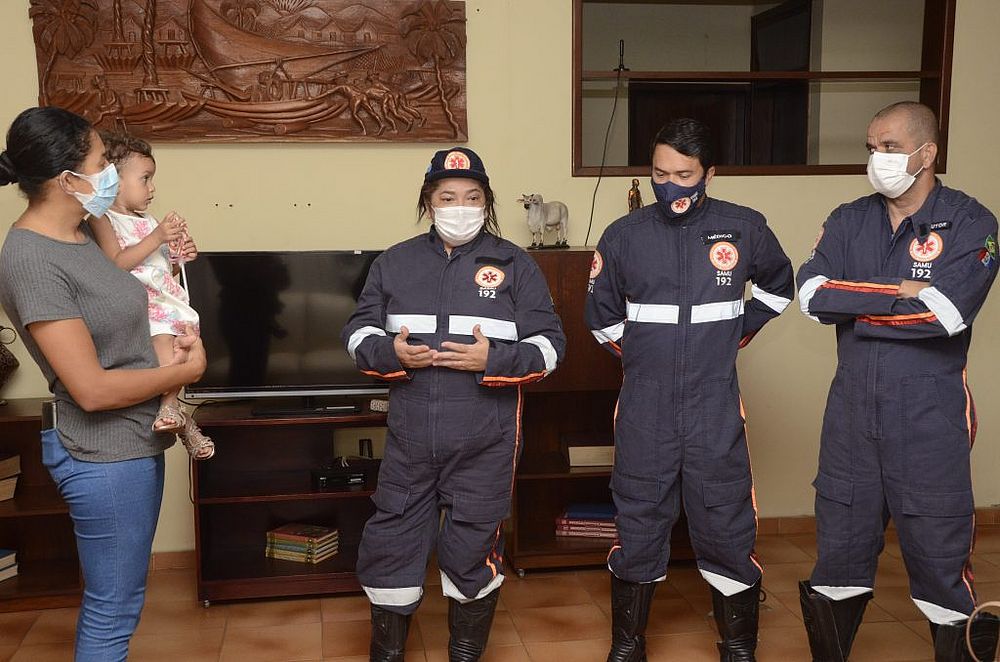 Socorristas relembraram o caso e conversaram com a família sobre o atendimento. Foto: Olival Santos / Ascom Sesau |