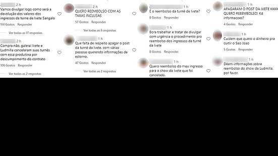 A última publicação do perfil da produtora no Instagram, feita na terça-feira, 14, tem centenas de comentários dos fãs da cantora. "Vamos divulgar logo como será a devolução dos valores dos ingressos da turnê de Ivete Sangalo", cobrou uma seguidora. "Quero o reembolso com a taxa", afirmou outro perfil.