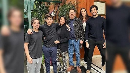 Na foto estão João Guilherme, 17, Rodrigo, 13 e Lara Silva, fruto do primeiro casamento de Faustão, com Magda Colares. Além disso, o namorado de Lara, o apresentador Julinho Casares, também aparece na imagem. Um ponto que também chamou a atenção foi o sapato escolhido por Faustão. Os calçados são da marca Fendi e, no Brasil, chegam a custar R$ 8.737, no site oficial da empresa Farfetch, especializada em moda de luxo.