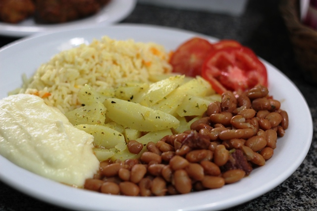 E olhe que a feijoada é o item mais “caro” no restaurante, porque o preço de qualquer outro prato é R$11,00. O sistema é sem balança. Pode comer acompanhamentos (arroz, feijão,purê,verdura e salada), a vontade. Depois escolha duas proteínas. Adorei a galinha ao molho pardo e bife à milanesa.