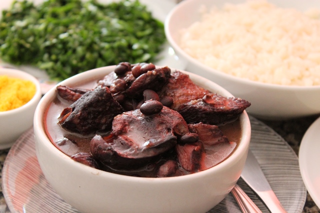 Feiojada com bacon, calabresa defumada, charque e, o melhor, tem um caldo consistente