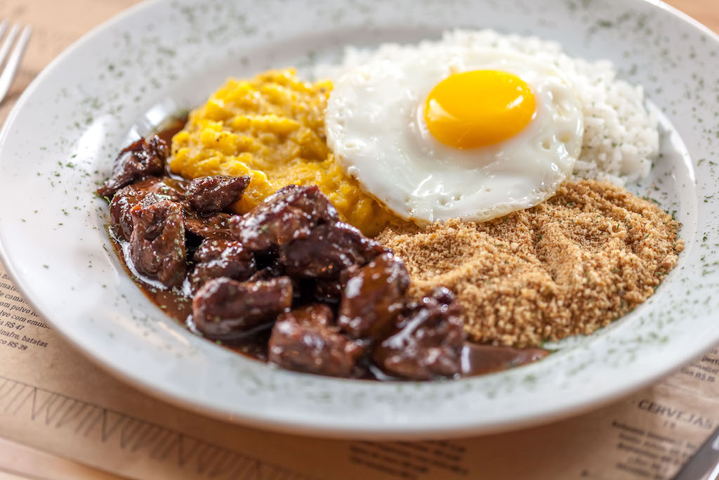 O nosso Jonatas caprichou na versão alagoana o picadinho de filé, com purê de batata rústica (amei), farofinha de brioche (fabricação da própria casa), arroz, ovo e filé em pedaços ao molho apurado da própria carne.