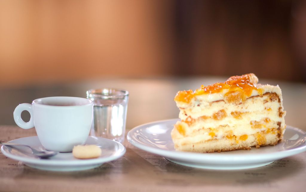 Café com torta de damasco, boa proposta do Castro. Foto de Rui Nagae