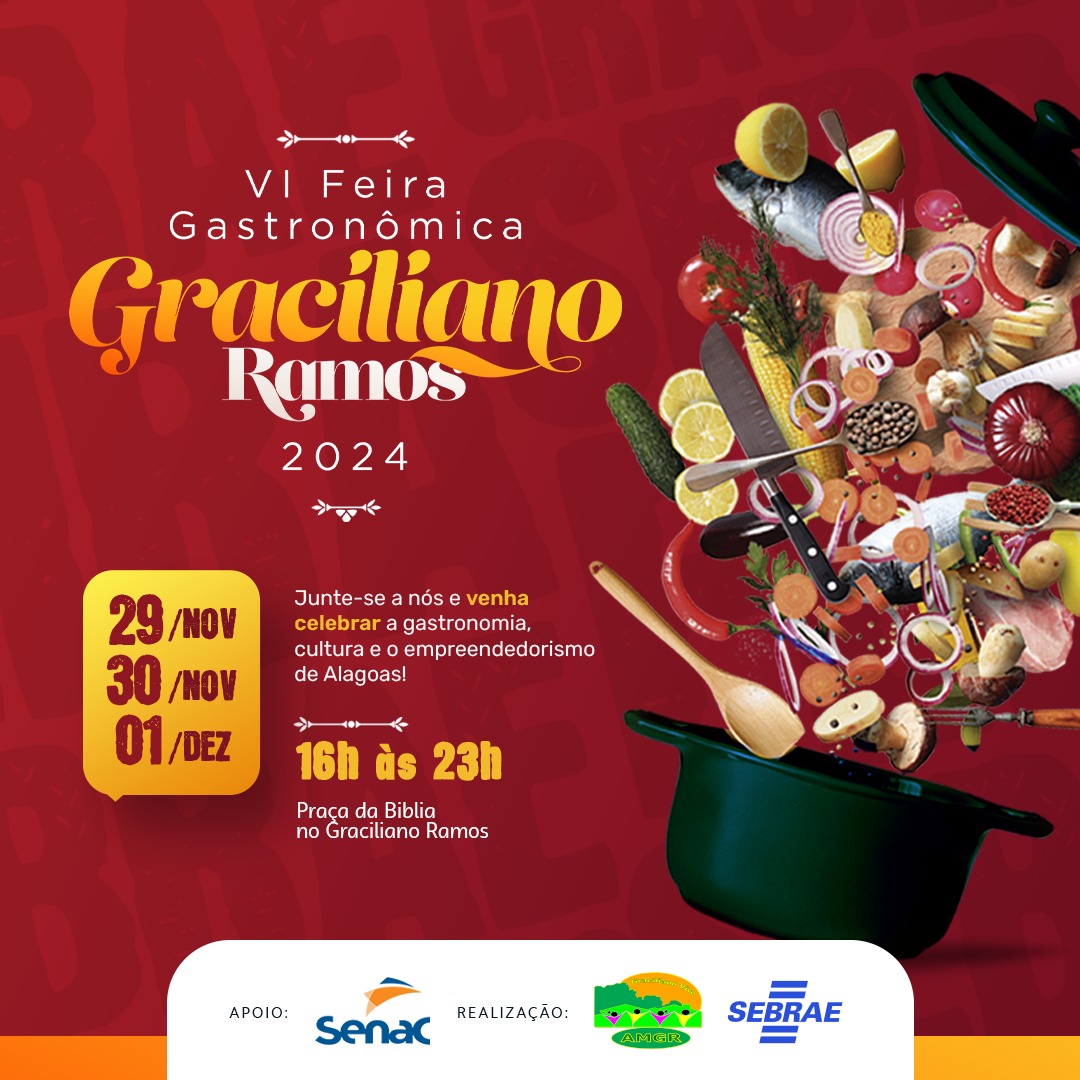 Não perca a Feira Gastronômica de Graciliano Ramos! Venha experimentar sabores únicos e apoiar os empreendedores locais. Texto com Assessoria de Imprensa do Sebrae