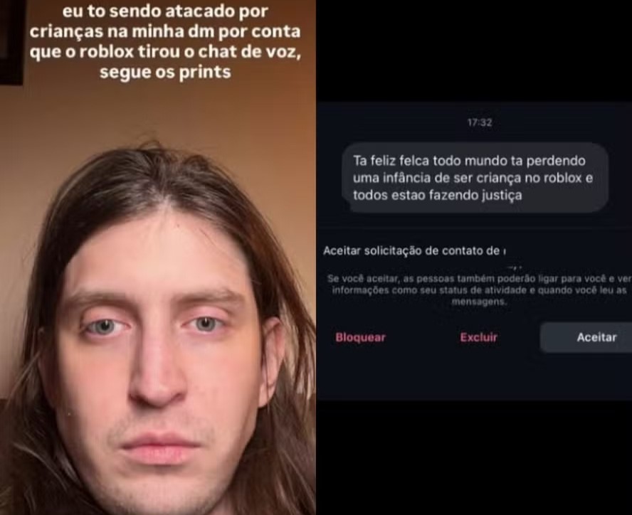 "Eu estou sendo atacado por crianças na minha DM por conta que o Roblox tirou o chat de voz", escreveu o influenciador, ao compartilhar capturas de tela das mensagens. Em uma delas, um usuário afirma: “Felca, eu vou te matar”. "Todo mundo perdendo uma infância de ser criança", mandou outro.