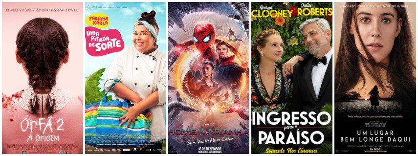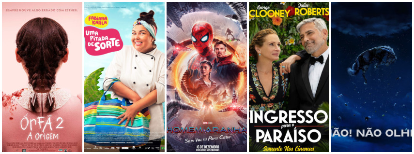 Na parte alta da cidade, ‘A Órfã 2: A Origem’ e ‘Uma Pitada de Sorte’ estreiam com destaque. A versão estendida de ‘Homem-Aranha: Sem Volta Para Casa’, ‘Ingresso Para o Paraíso’, ‘Não! Não Olhe!’, ‘Telefone Preto’, ‘Thor: Amor e Trovão’ e ‘Minions 2: A Origem de Gru’ continuam em cartaz.
