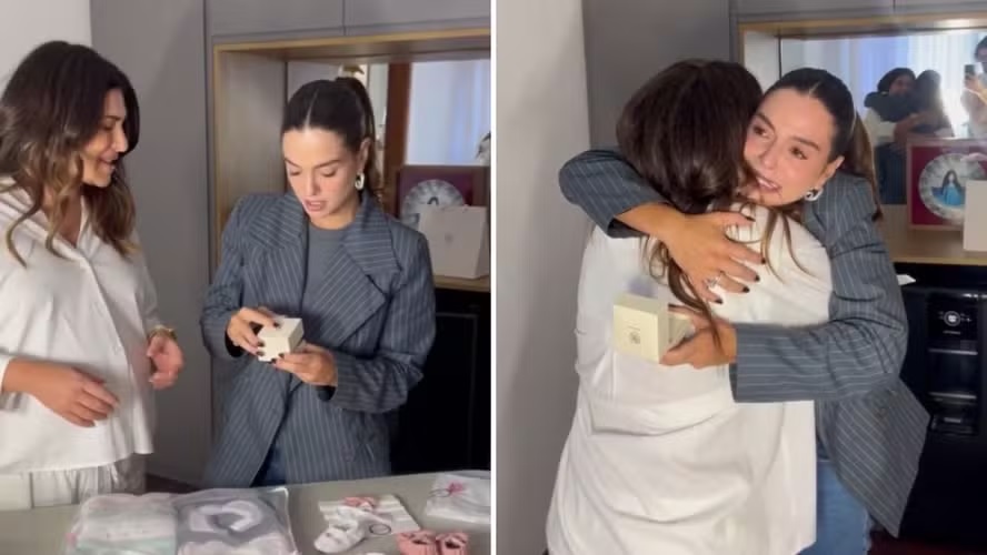 Giovanna Lancellotti respondeu ao anúncio com uma mensagem cheia de carinho: "Eu sou apaixonada por vocês! Vem Pilar, que sua dinda já te ama muito".
