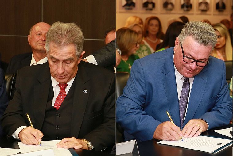 ![]() Vice-presidente, desembargador Orlando Rocha, e o corregedor-geral da Justiça, Domingos Neto (Foto: Caio Loureiro / TJ-AL) |