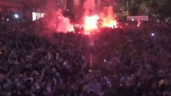 O momento foi registrado pelo canal australiano SBS. No vídeo publicado nas redes sociais da emissora, é possível ver parte da festa dos australianos, colorida por uma atmosfera vermelha, criada pelas cores dos sinalizadores, e preenchida pelo som de cantos de torcida.