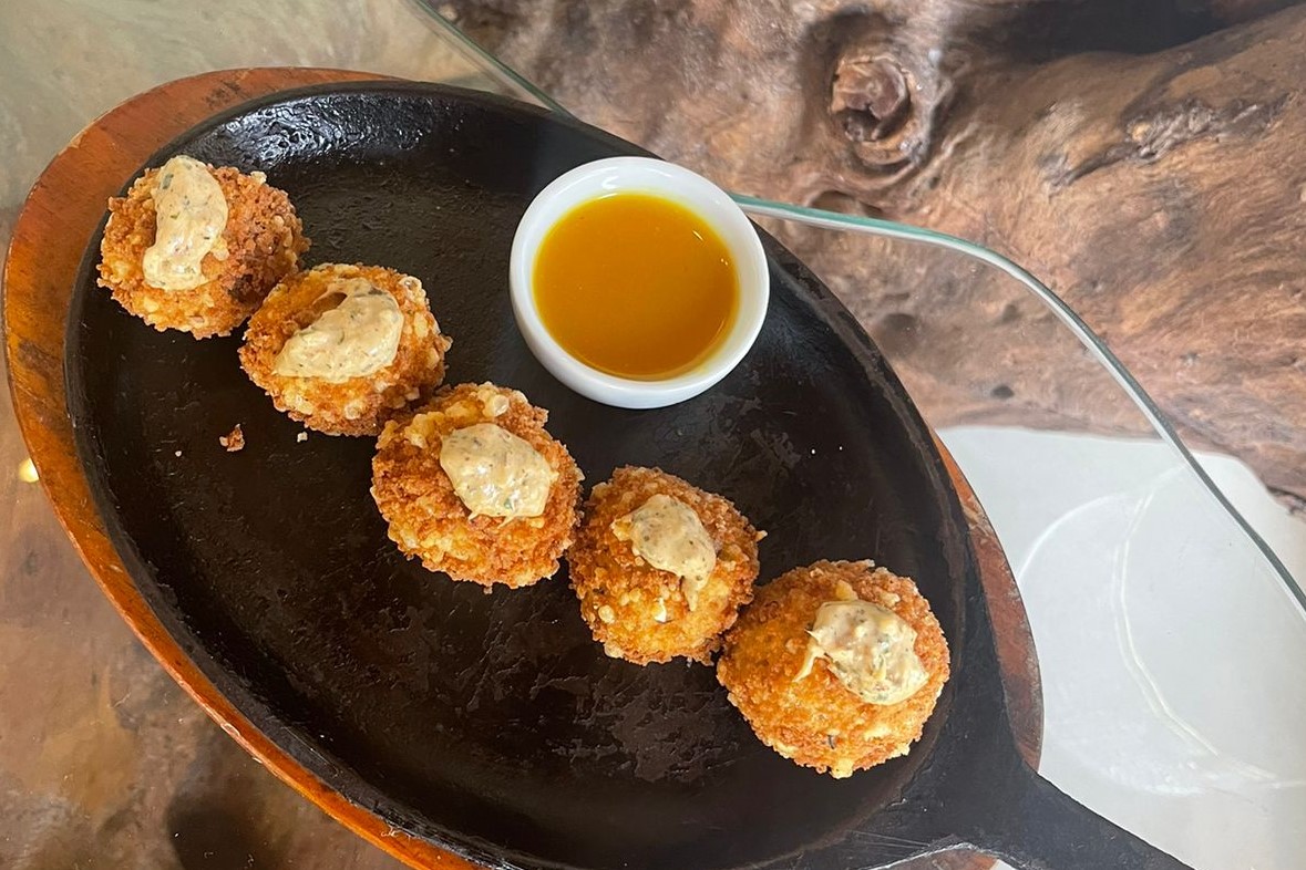 Coconut (@coconut.maceio): “Crocante de charque” – uma delícia de carne de charque desfiada com requeijão cremoso e ervas, empanada com farinha panko, parmesão e frita. Finalizada com maionese de bacon, acompanha molho de mostarda e mel.