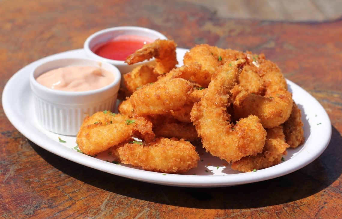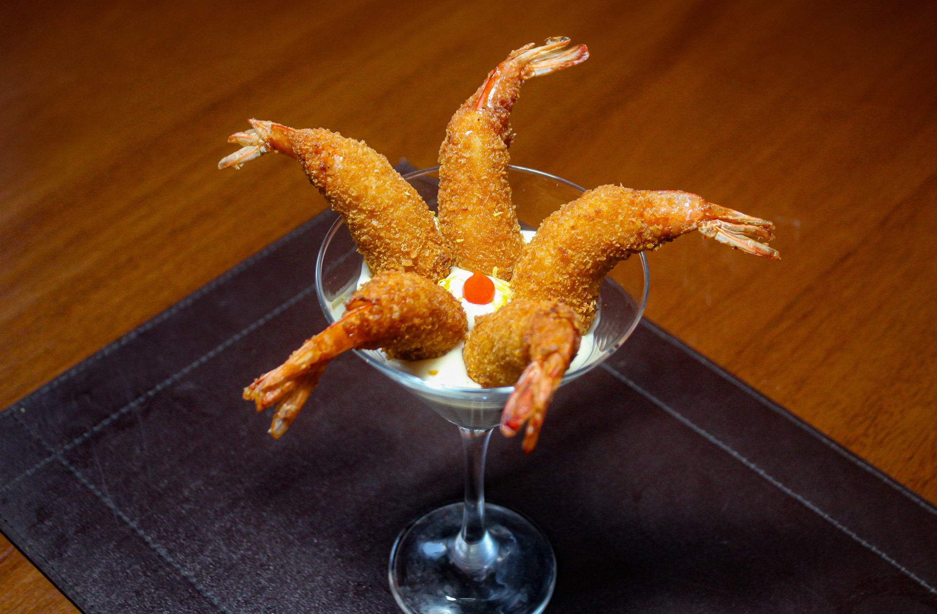 Ninita (@ninitarestaurante): Camarões empanados com creme de queijo e raspas de limão.