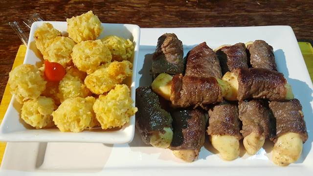 Mix Sertanejo: Carne de sol envolvida em queijo coalho e acompanhada de pipoca de macaxeira.