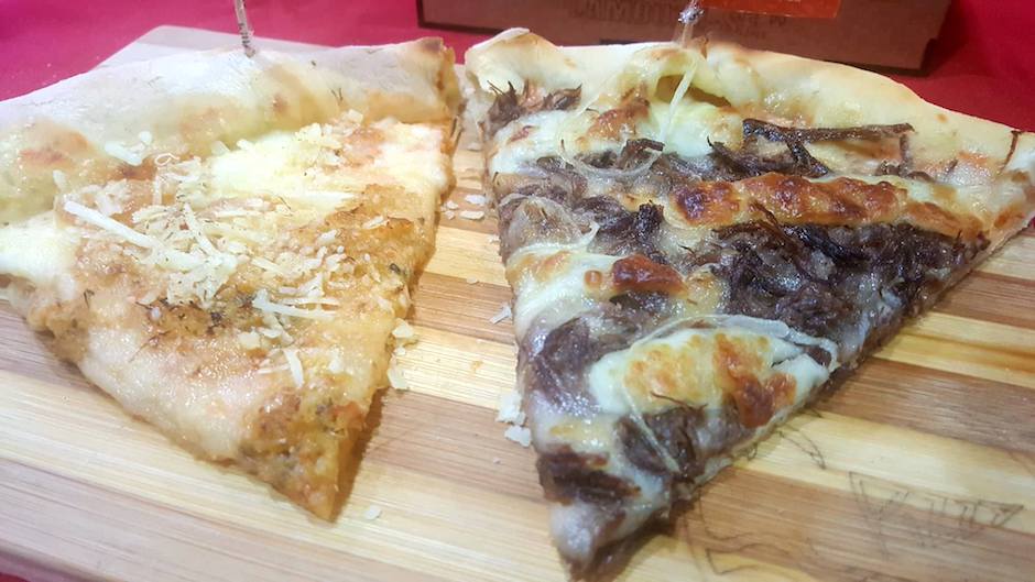 Pizza Jatiúca: massa com molho de tomate à moda da casa, carne de sol e queijo coalho. Pizza Ipioca: massa com molho de tomate à moda da casa e filé de siri.