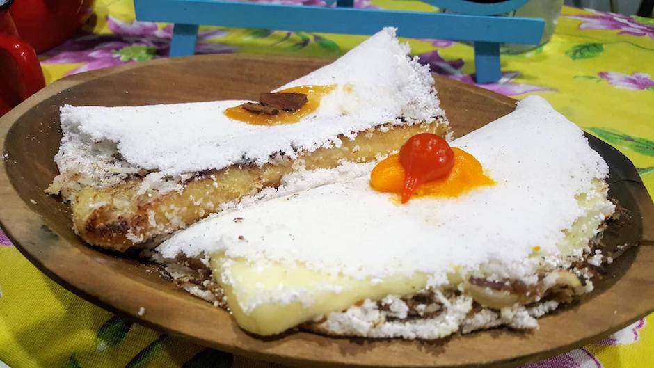 Dueto Caetés: Combo com duas tapiocas de carne de sol e banana com doce de leite.