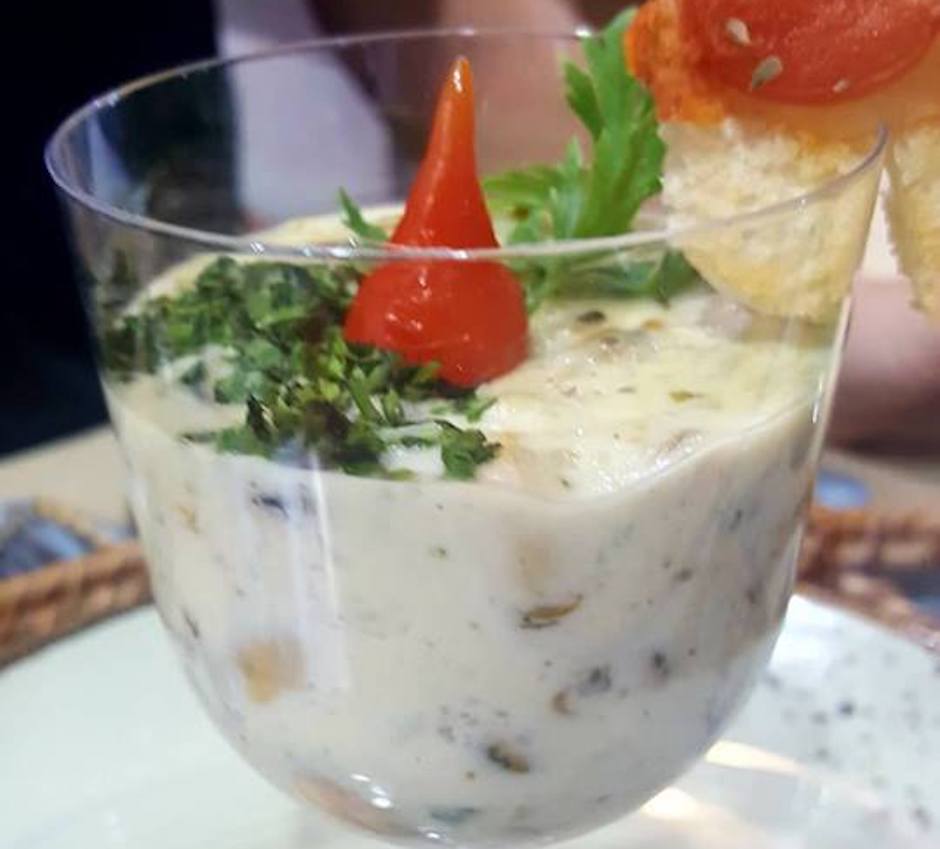 Sururu arretado: Sururu ao creme de macaxeira, acompanhado de torradas.