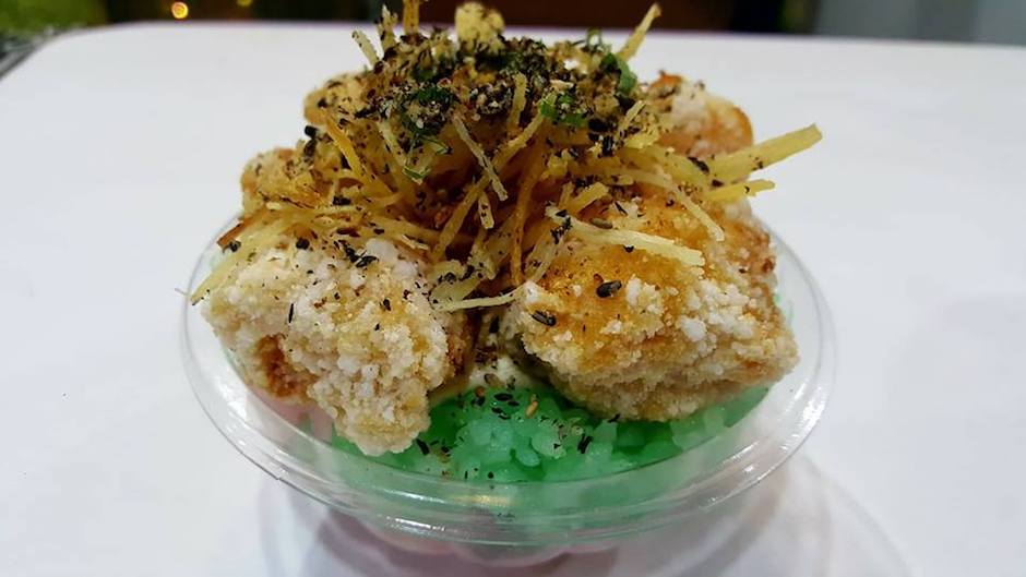 Bubble Waffle: com sorvete de tapioca ou chocolate, com cocada mole e gotas de chocolate.