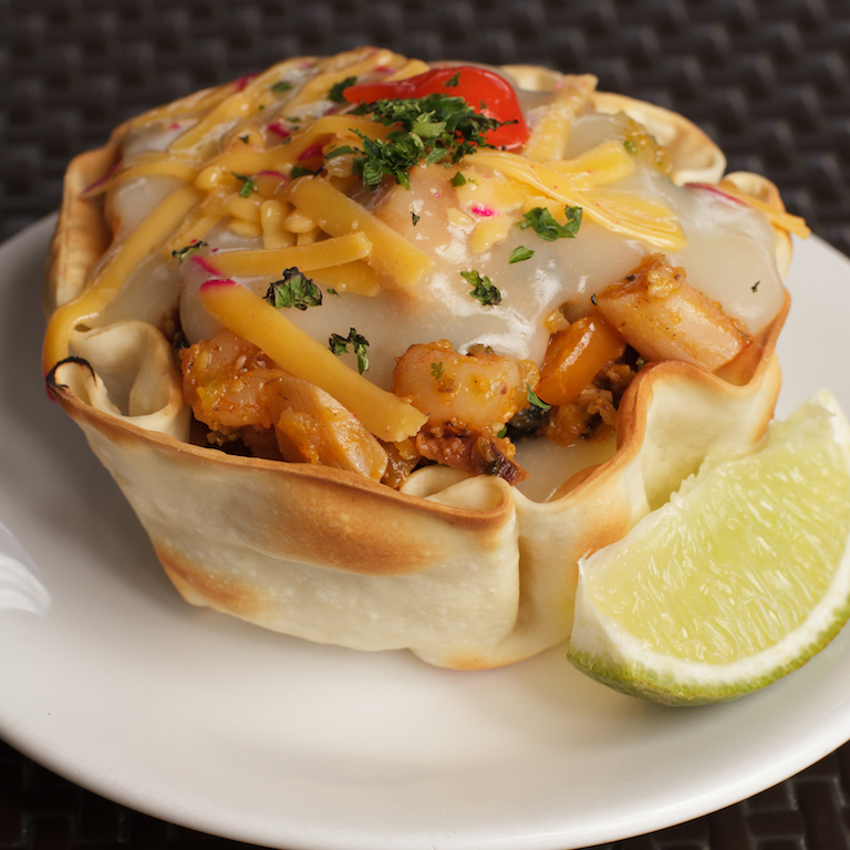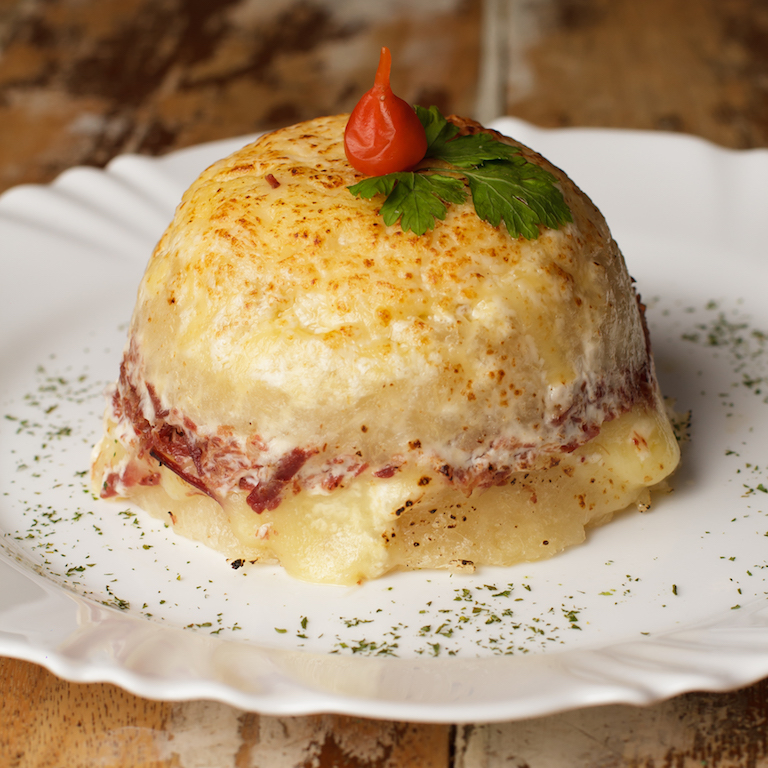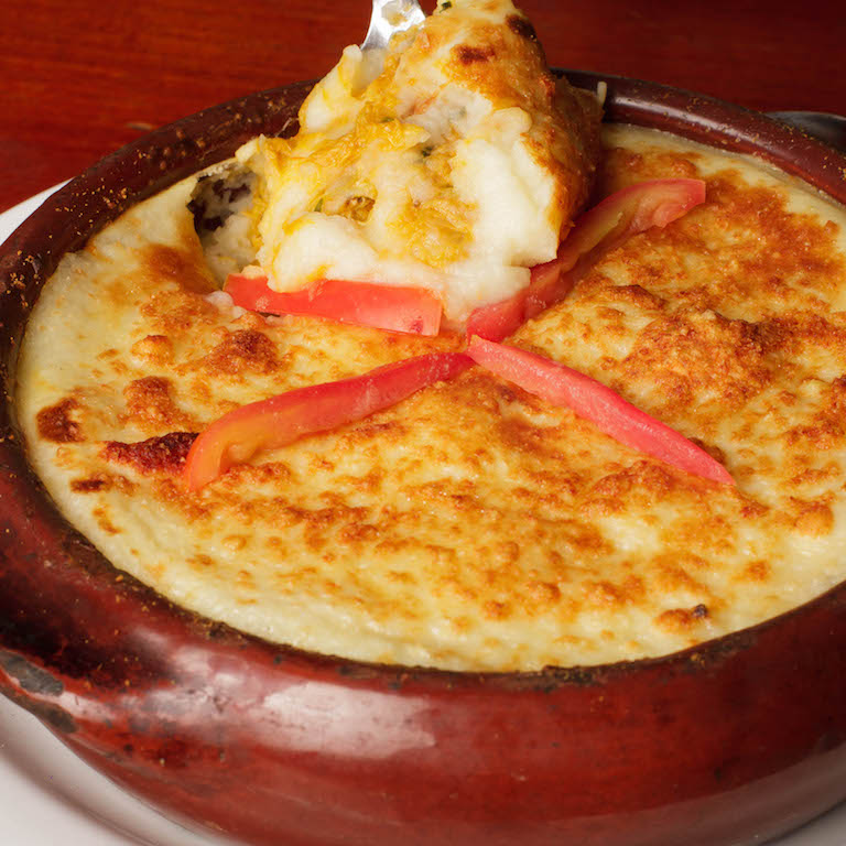 MASSAGUEIRINHA – Escondidinho de filé de siri no purê de macaxeira, requeijão catupiry, batata palha e molho base massagueirinha.