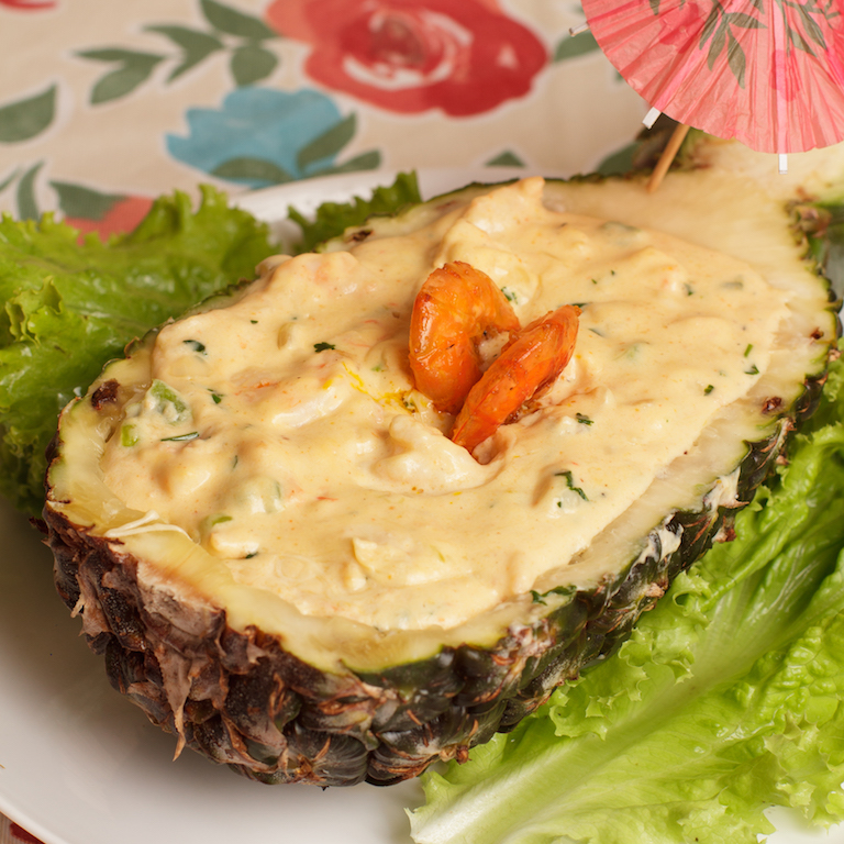 CASA DE MAINHA – É Bom Demais Júnior é uma receita de camarão com sururu no abacaxi.