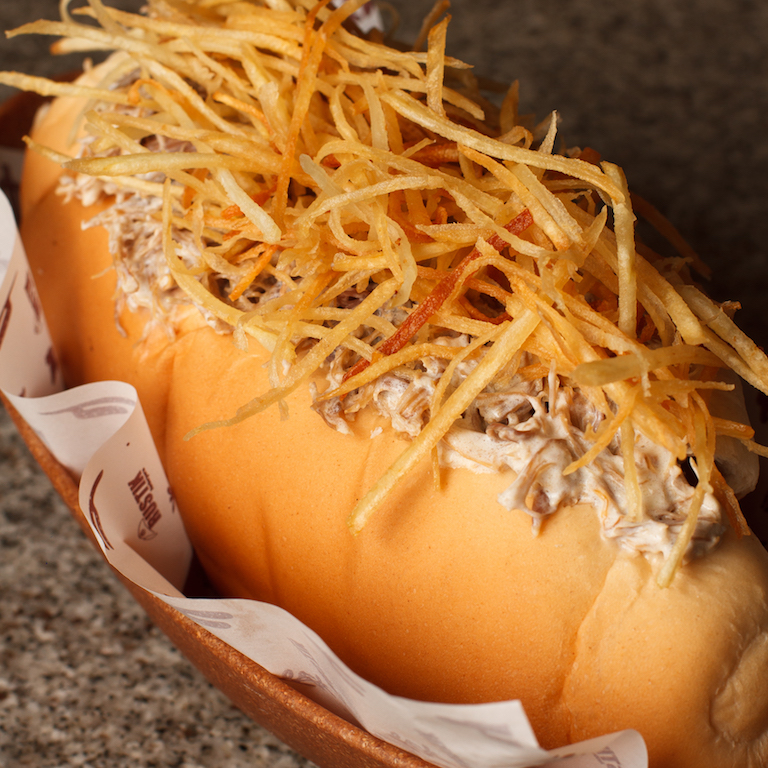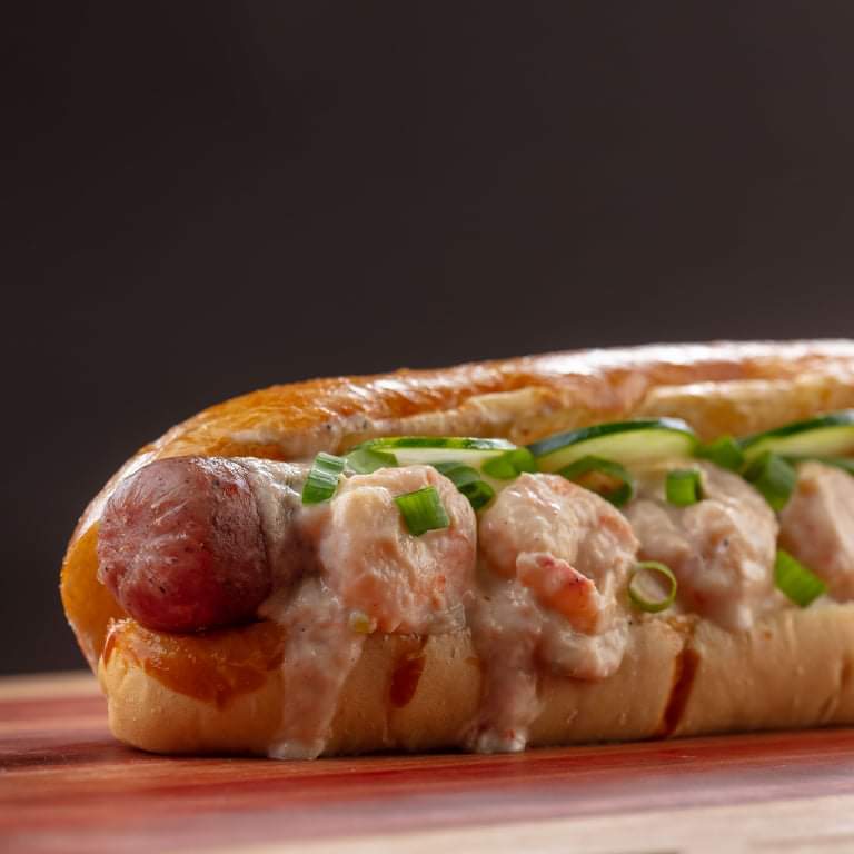 DOOPER – Hot Dog Danado de Bom no pão brioche, salsicha especial Viena, molho dooper, crocante de bacon e queijo manteiga maçaricado.