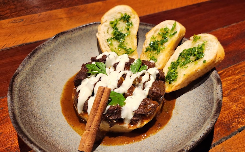 Já no Anamá, teremos Panelinha de Cordeiro com Gorgonzola. A carne é abraseada com especiarias, sobre cama de batatas, coberta com molho de gorgonzola e acompanhada com torradas de alho e ervas.