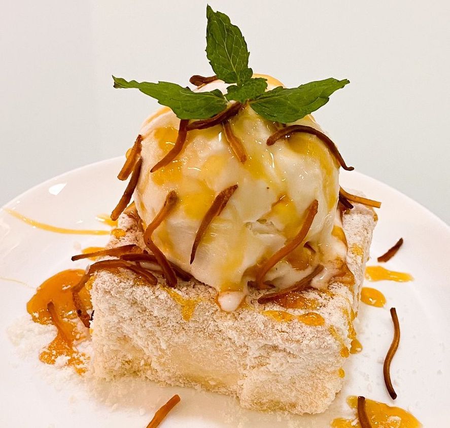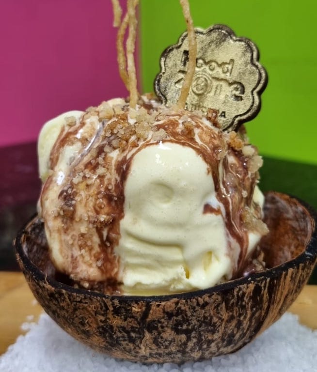 B.VERRINES – 7 Coqueiros: Bolo gelado de coco com sorvete de tapioca, mel de engenho, coco queimado e hortelã.
