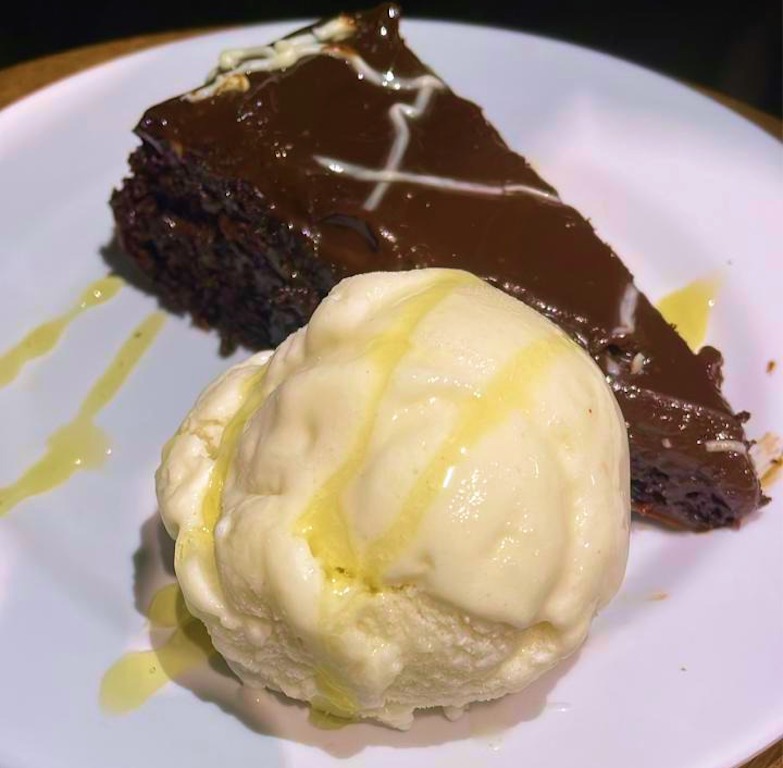 BRUNCH – Quilombolas: bolo de chocolate 50% sem glúten e sem lactose, recheio de prestígio com sorvete de coco e mel.