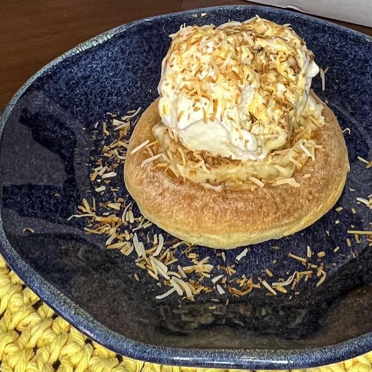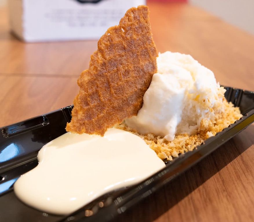 LILA – “Fellicidade Alagoas”: Sorvete de tapioca, com creme de queijo, farofa crocante de coco e biscoito de cascão.