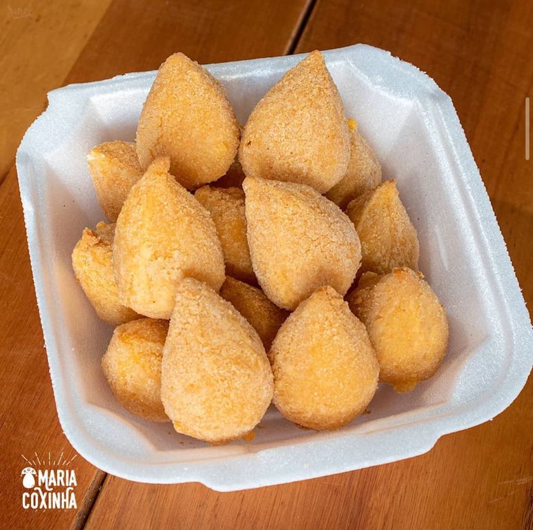 MARIA COXINHA – Coxinha Arretada: 12 deliciosas coxinhas tamanho festa, recheadas com frango cremoso, acompanhadas de um molho especial a base de ervas.