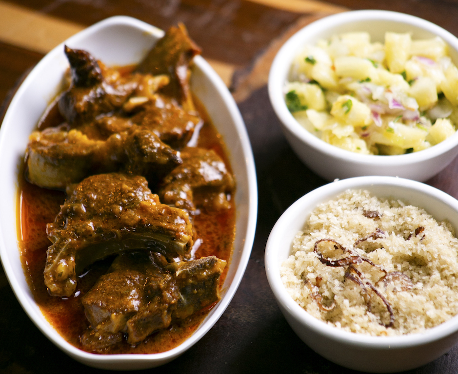 Panela de Barro: carneiro guisado, farofa crocante e um incrível vinagrete de maçã, bem refrescante